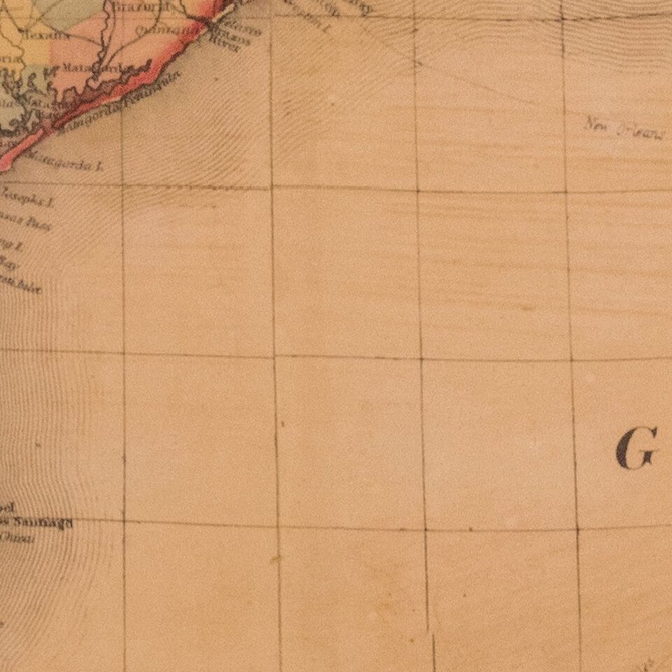 Mitchell’s first cartographic work was the re-issue of Anthony Finley’s New American Atlas in 1831, a work first issued by Finley in 1826, in response to Henry Schenk Tanner’s monumental work of the same title, issued in serial format from 1818 to 1822 and as a complete work from 1823 onward. While the map content in Mitchell’s edition of the New American Atlas is the same as Finley’s edition, each map has been significantly improved and revised, primarily with the addition of new towns and roads. This is especially true in the south and west. Finley had originally collaborated with D.H. Vance and J.H. Young in the preparation of the maps, although Vance’s name is removed from the Mitchell edition. Mitchell continued to work with Young, an association which would continue for several decades.