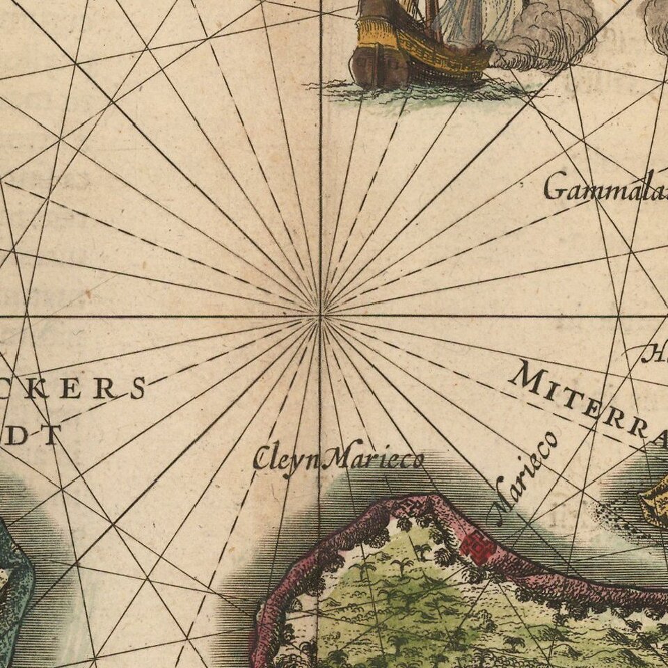 Willem died in 1638. He had two sons, Cornelis (1610-1648) and Joan (1596-1673). Joan trained as a lawyer, but joined his father’s business rather than practice. After his father’s death, the brothers took over their father’s shop and Joan took on his work as hydrographer to the Dutch East India Company. Later in life, Joan would modify and greatly expand his father’s Atlas novus, eventually releasing his masterpiece, the Atlas maior, between 1662 and 1672.