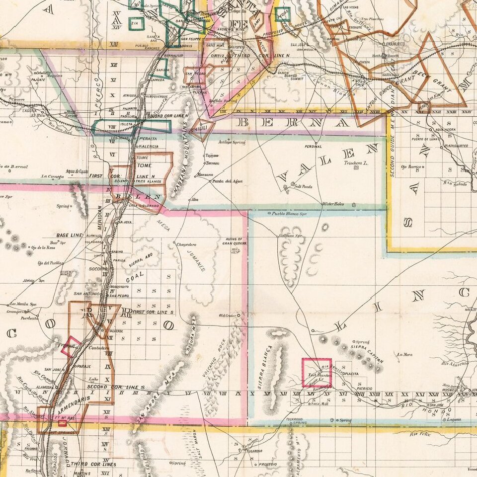 It is without doubt one of the most important maps of New Mexico and is an invaluable record of the boundaries of private land grants, military and Indian reservations, public surveys, and proposed railroads, it also records New Mexico geography, paying particular attention to the valleys of the Rio Grande and the Pecos, the mountains and the dry rolling country.