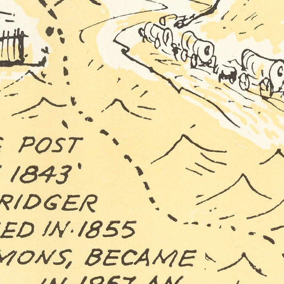 Rare pictorial map of the Mormon Trail, published by American Pioneer Trail Association.