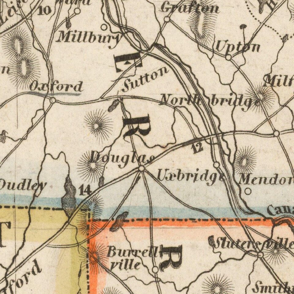 Elegantly engraved & detailed map of Massachusetts and Rhode Island, with a large inset plan of Boston, based upon Tanner's work in the early 1840's.