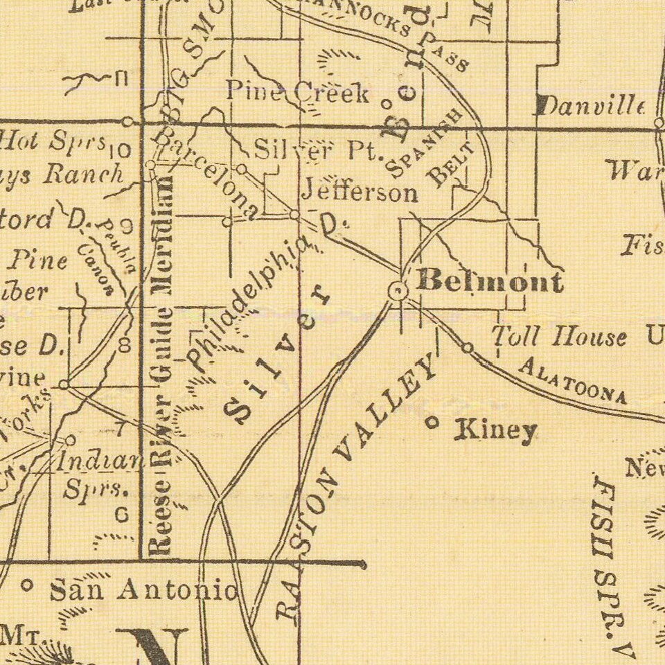 The year 1882 is an historically significant year in the evolution of Nevada's country configurations. The now extinct Roop County is shown, along with a straight north-south running county line between Lander & Eureka Counties, which would be modified the following year to its current more serpentine configuration.