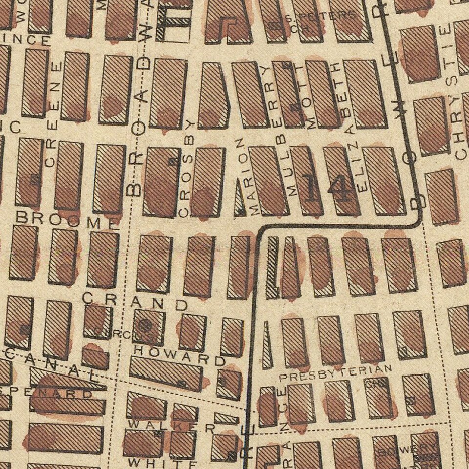 Striking full-hand-color example of Tallis's town plan of New York City, one of the few double-page plans published by Tallis.
