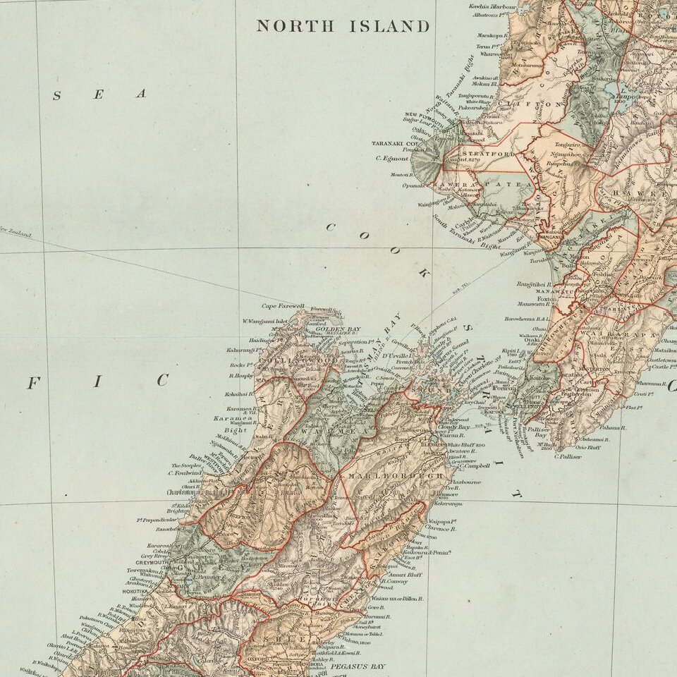 Fine and highly detailed map of New Zealand, from Stanford's London Atlas.