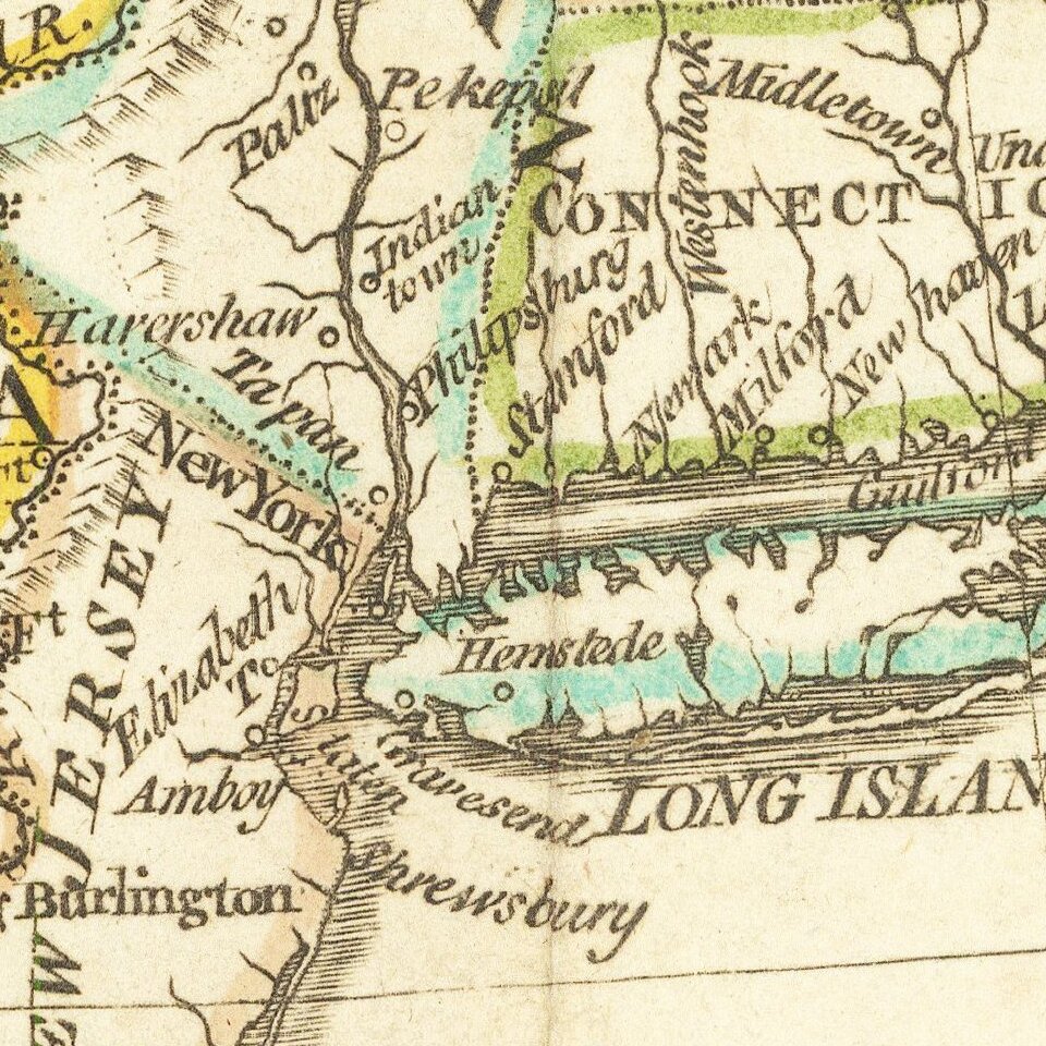 The map is rich with details west of the Appalachians, including Indian Tribes, early French and English forts and other contemporary information on the eve of the revolution. Main is named, but [New] Hampshire takes up all of Vermont. Massachusetts Bay and Delaware Bay are named, as are East and West Florida. The region west of the Mississippi is dominated by Spanish Louisiana Territory, with the lands between the Mississippi and the Appalachians controlled by Indian Tribes.