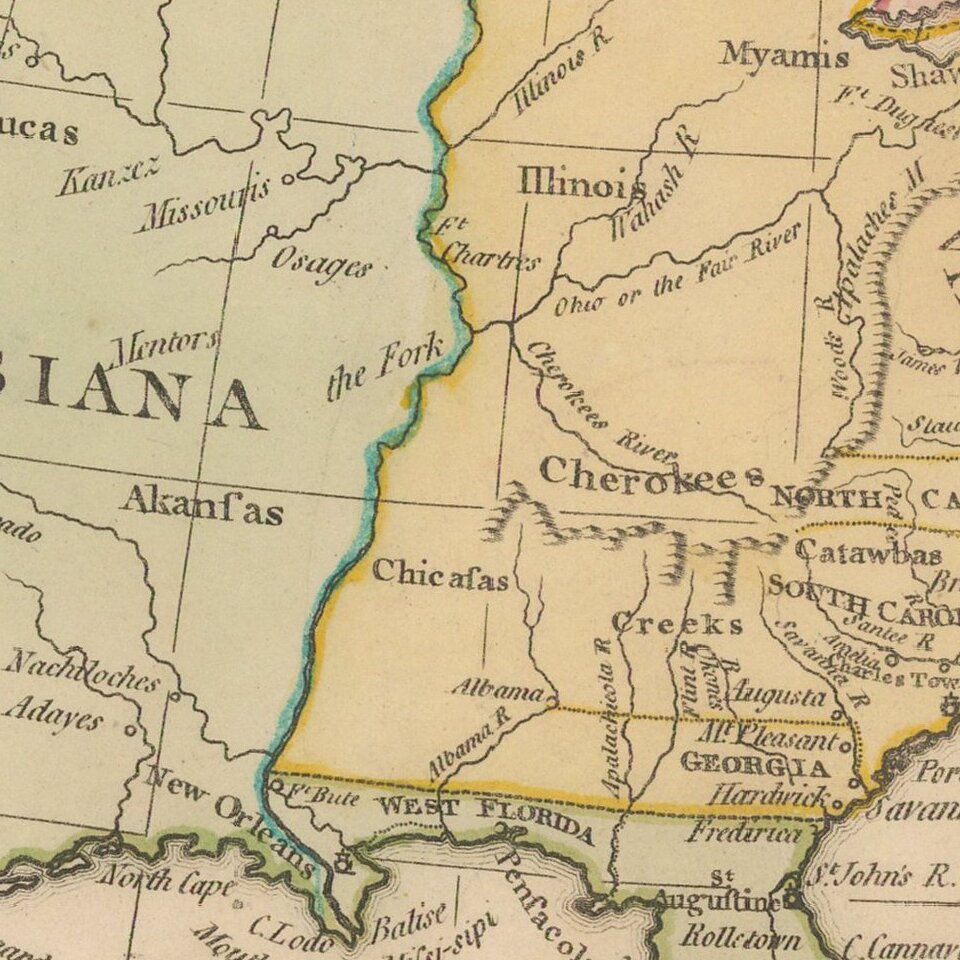 Attractive map of North America, highlighting Louisiana Territory and the newly formed United States.