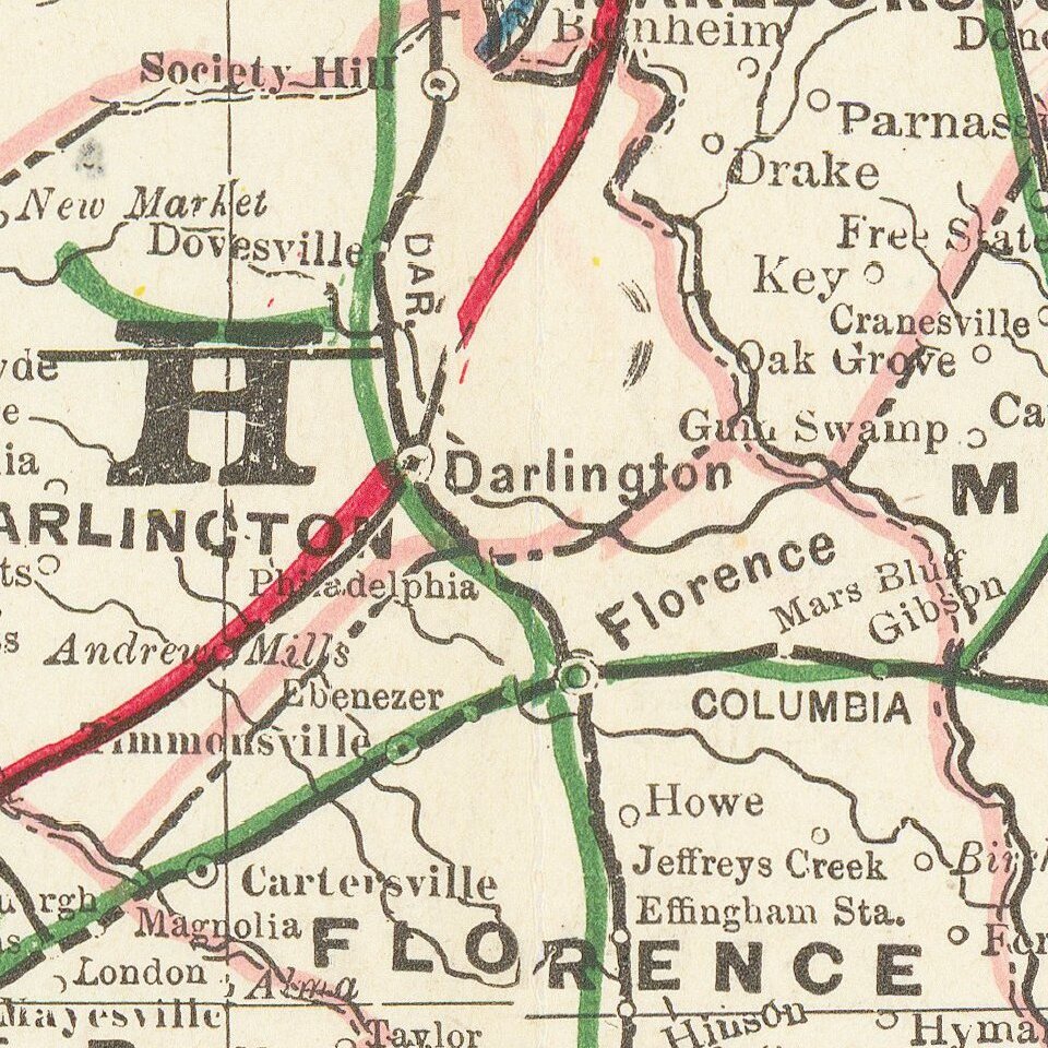 A fabulously detailed railroad map of the Carolinas, from Cram's scarce Standard American Railway Atlas.
