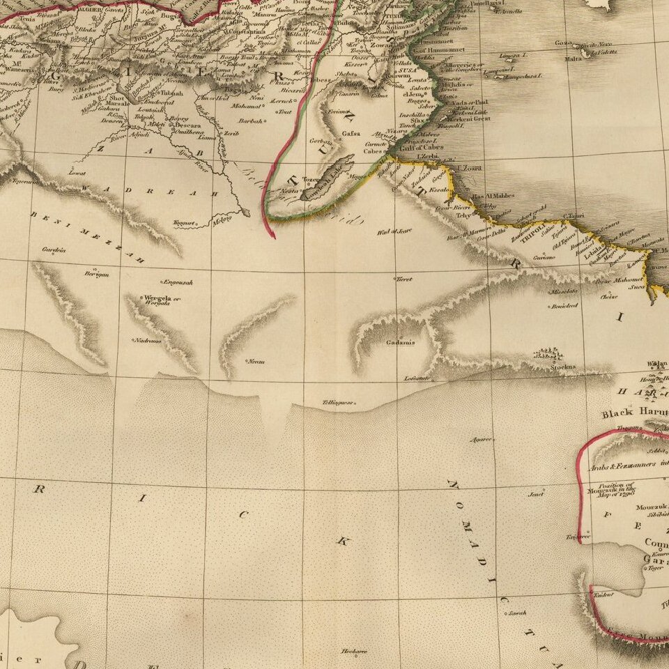 Highly detailed map, extending from Morocco to Libya and south to the Great Desert. The map shows Nomadic tribes and a nice treatment of the western Mediterranean from Gibralter to Greece, centered on Sicily and Sardinia.