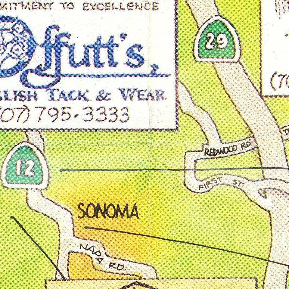 Detailed promotional map of Northern California, advertising the horse riding facilities in the region.