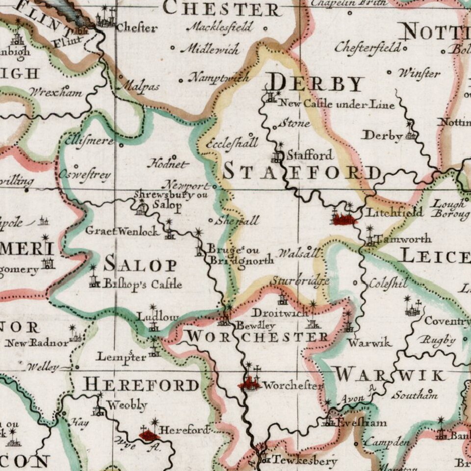Shows the major Cities, Churches, Universities and other points of significance within England.