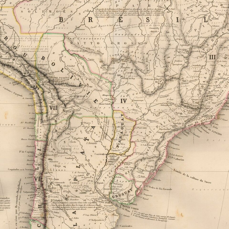 The map provides a fine large format depiction of South America in the middle of the 19th Century.