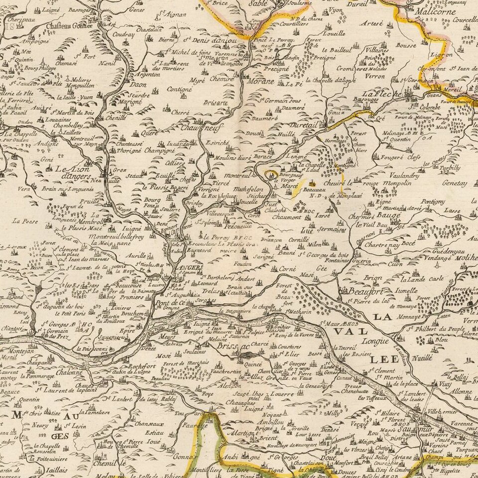 Scarce early map of the Anjou region of France, published by Gerard Jollain.