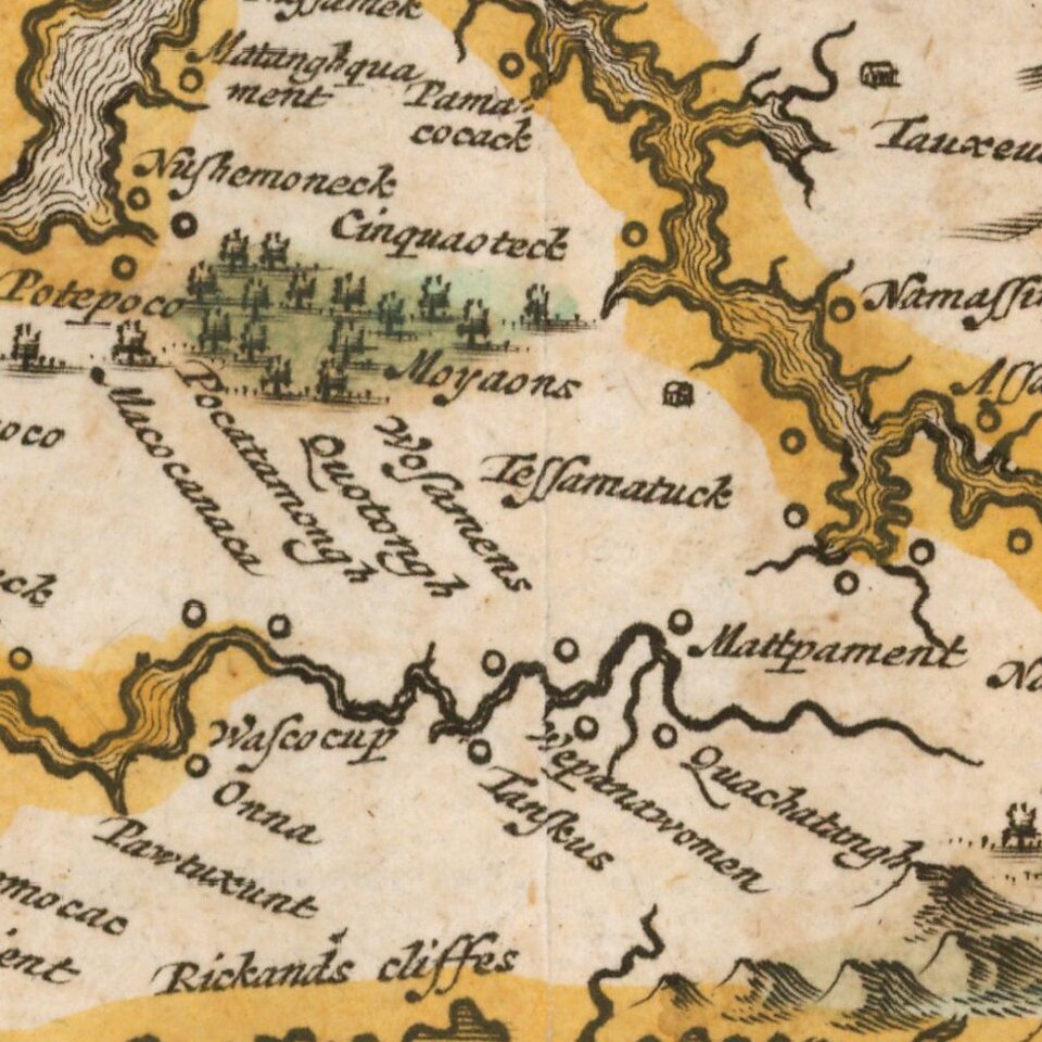 The map is based upon the earlier maps by Hondius and Blaeu, a bit smaller, but with 3 large cartouches, one of which includes fascinating indigenous animals, including a llama and horned long haired sheep. Smith's map of the Chesapeake region was the basic prototype of all regional maps until Augustine Herman's exceedingly rare 4 sheet map published in London in 1673. Tooley notes that the map derives from the first state of the Smith map, and therefore lacks the longitude lines added in later states.