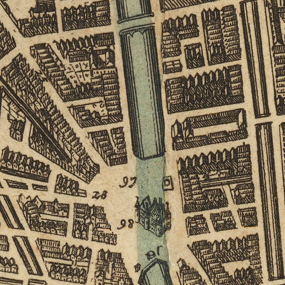 The map provides an historical look at the growth of Amsterdam, superimposed over its existing situation at the beginning of the 18th Century: