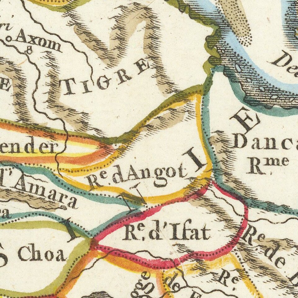 Detailed map of part of the area centered on the Red Sea and the Horn of Africa, featuring modern-day Somalia and Ethiopia.