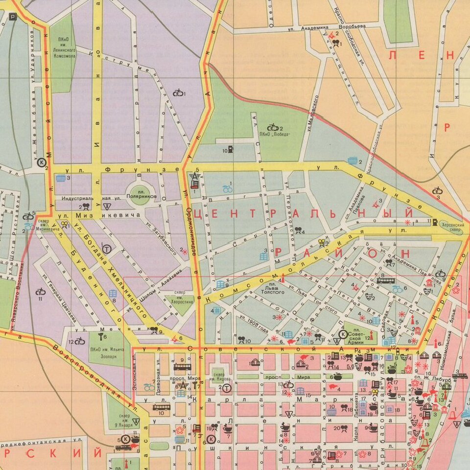 Attractive color-printed folding map of Odessa, issued in Moscow as part of a series of tourist maps for medium to large cities in the USSR.