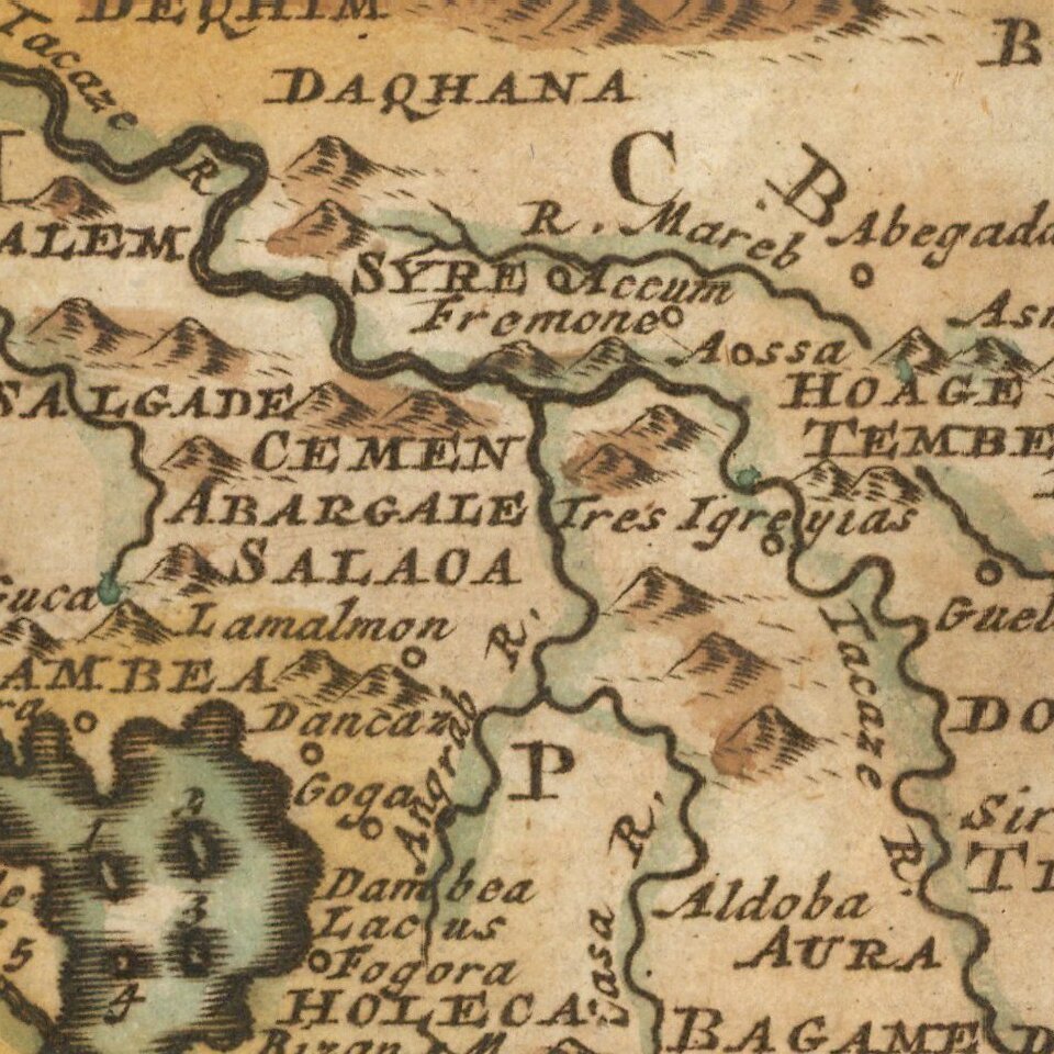 The map shows the explorations of Jeronimo Lobo. Jerónimo Lobo (1595– 1678) was a Portuguese Jesuit missionary. He took part in the unsuccessful efforts to convert Ethiopia from the native Ethiopian church to Roman Catholicism until the expulsion of the Jesuits in 1643. Afterwards he wrote an account of his time in Ethiopia, Itinerário, which is an important source for the history and culture of that country.