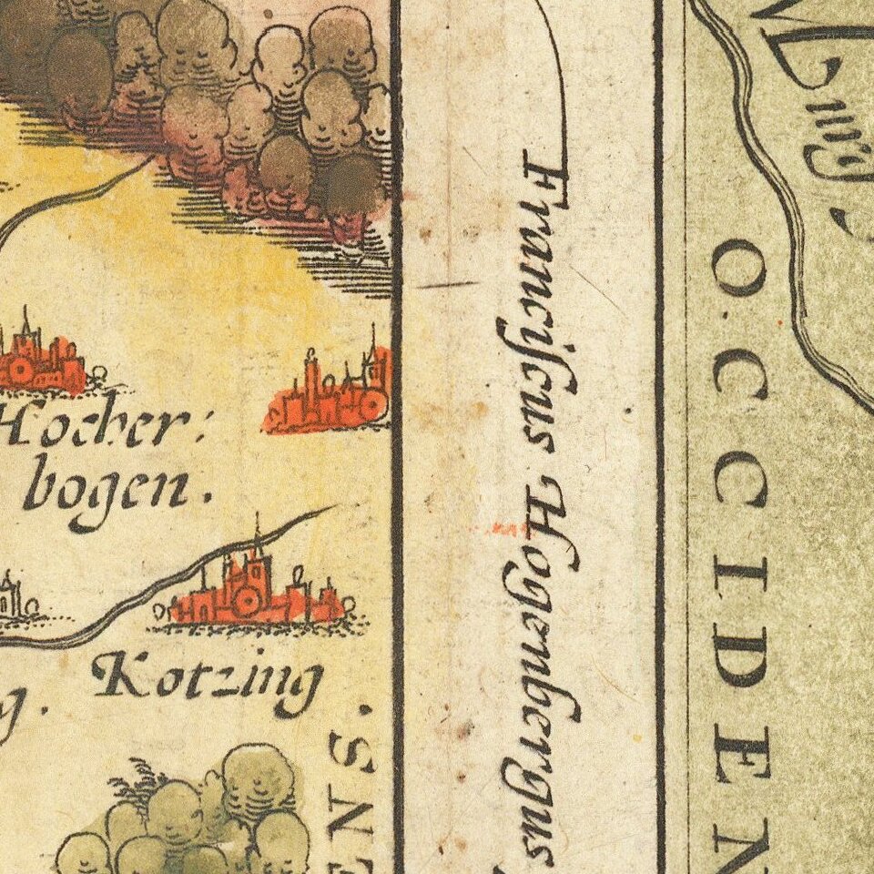 The map of the Rhine, both south and north of Strassbourg is based on Daniel Specklin's three-sheet map of the Elzas of 1576. It includes Stuttgart at the center.