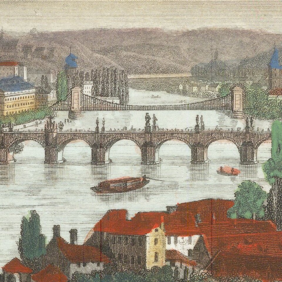 Rare panoramic view of Prague, showing the town from the Chotkovy hillside.
