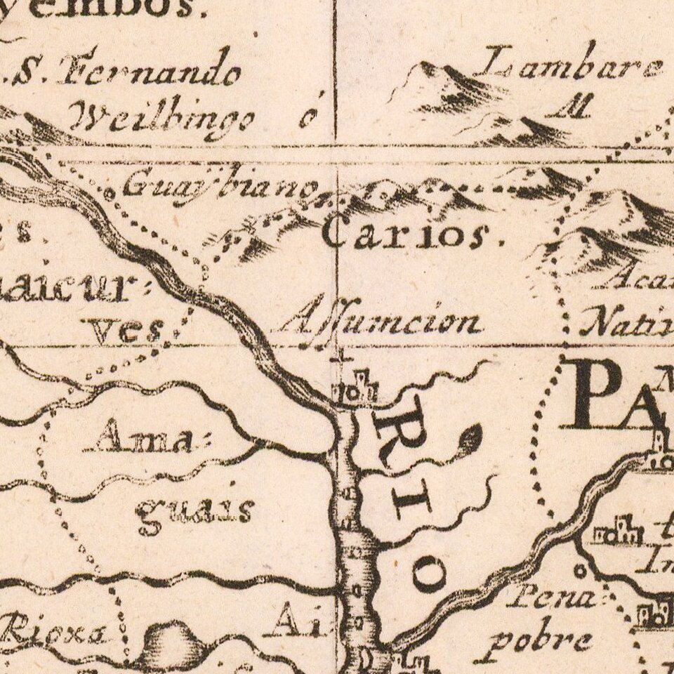 Early Dutch edition of this detailed early map of the Rio de la Plata Region, showing Buenos Aires, the source of the Rio de la Plata and Paraguay Rivers and extending west to Chile and Peru.