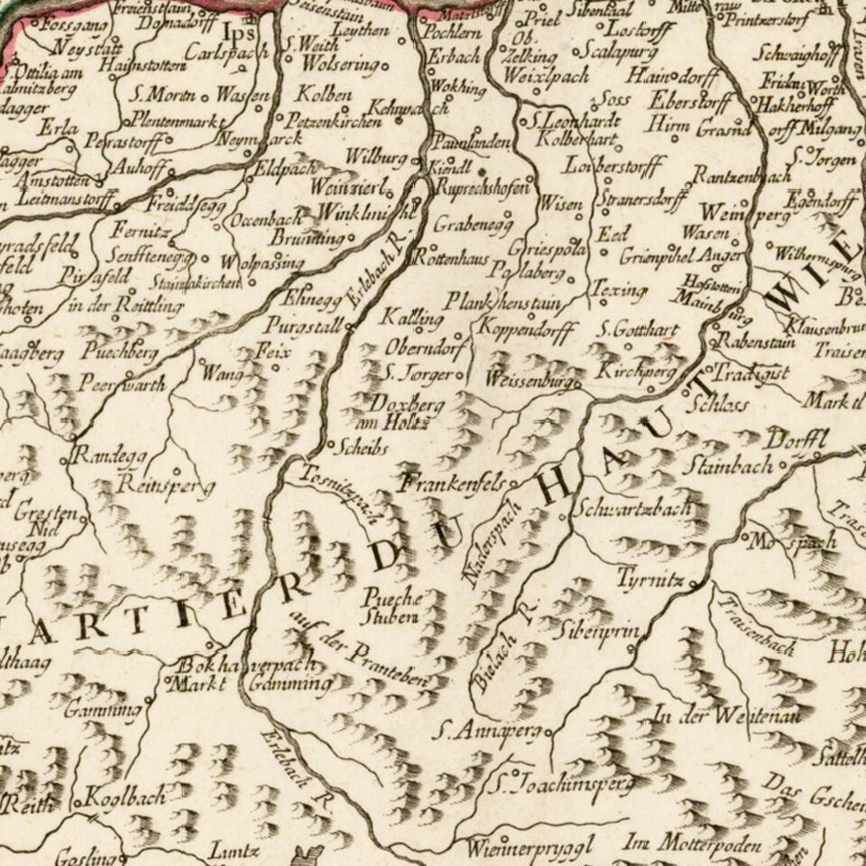 Detailed map of the northern part of Austria, published in Venice by Paolo Santini.