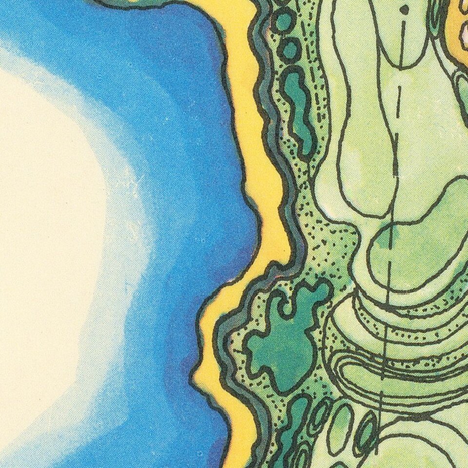 Decorative map of the Pebble Beach Golf Links, first published in 1968.