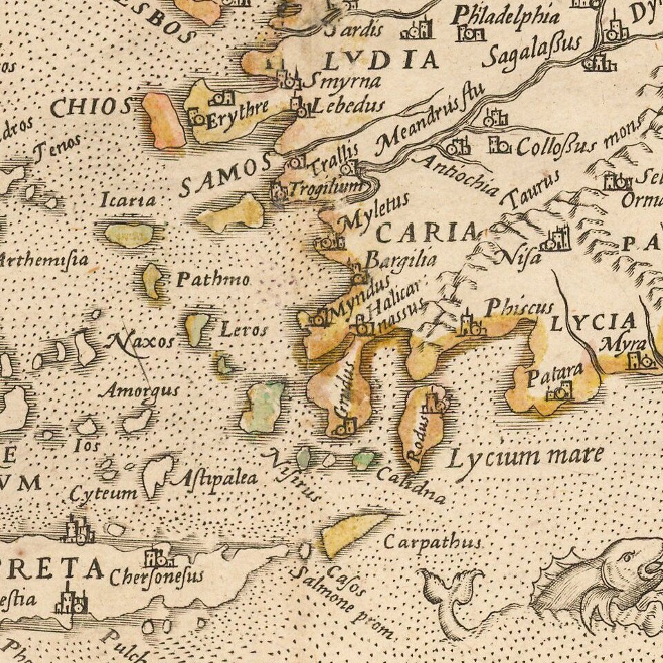 Extremely rare separately published map of the Holy Land, Cyprus, Asia Minor and the Eastern Mediterranean and contiguous regions, published in Paris by Jacob (Jacques) Honervogt.