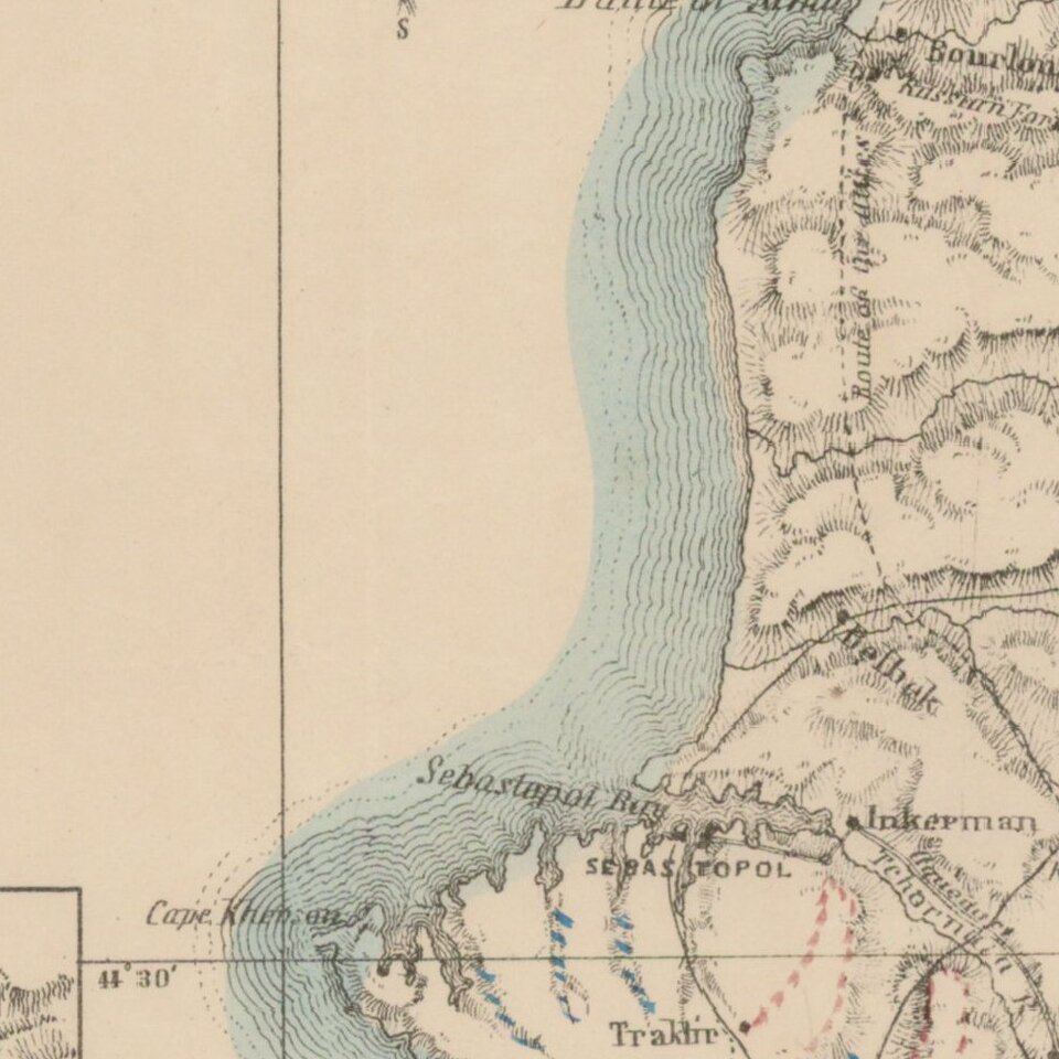 Rare separately issued map of showing the status of the War in the Crimea, published by John P. Jewett & Co. in Boston and Lithographed by S.W. Chandler & Bro. in Boston.