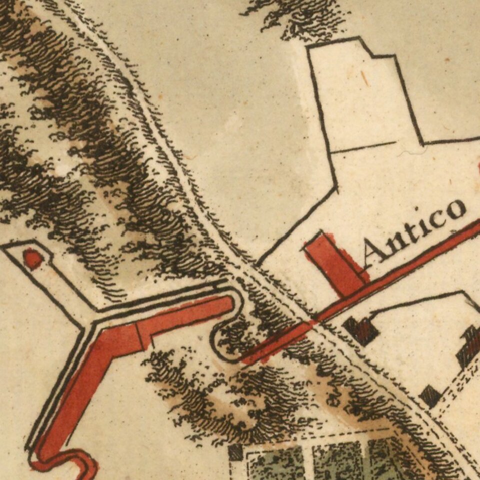 The map illustrates the fortifications, as they existed during the French & Indian War.