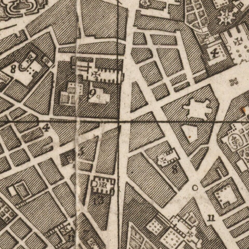 On either side of the map image, an detailed key locates important places, Universities, Music Conservatories, Schools, Major Squares, Churches, Chapels, Monastaries, Convents, Women's Cloisters, etc.