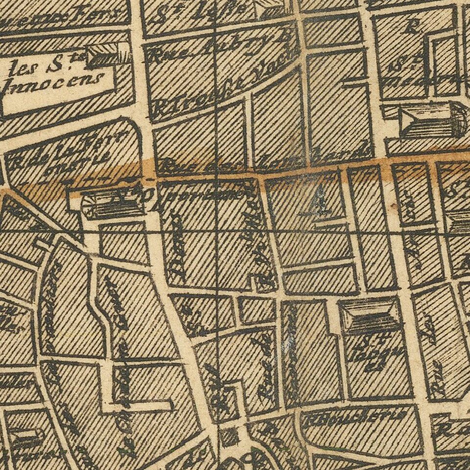 Rochefort's map is of note as the second map to present Paris in a North-South axis, with the Seine being illustrated horizontally.