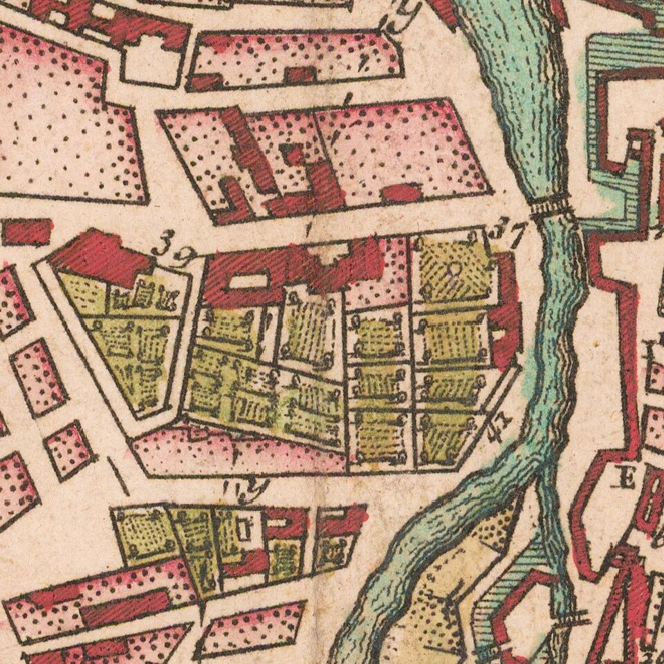George-Louis Le Rouge (1712-1790), though known for his work in Paris, was originally born Georg Ludwig of Hanover, Germany. He grew up and was educated in Hanover, after which he became a surveyor and military engineer. Around 1740, however, Le Rouge moved to Paris and set up shop as an engraver and publisher on the Rue des Grands Augustins. It was at this time that he changed his name, adopting a French pseudonym that would later become quite famous.