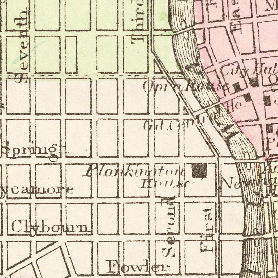 Shows the Milwaukee & St. Paul RR, the Milwaukee & Prairie Du Chien RR, the Chicago & Northwestern RR, the Mil. L.S& W. RR, the Chicago, Milwaukee & St. Paul RR and others. The Northern Depot, Burnhan Canal, Kneeland Canal, Court House, City Hall, and a number of other hotels, and buildings etc. are noted.