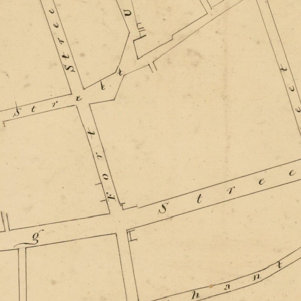 The earliest map to outline the new pattern of streets was by Charles Wilkes' U.S. Exploring Expedition's Harbour of Honolulu Island of Oahu (1840, published 1845). In 1843, Captain Richard Charlton, the British Consul in Honolulu drafted a manuscript map that was the first to detail and label the major buildings of the town.
