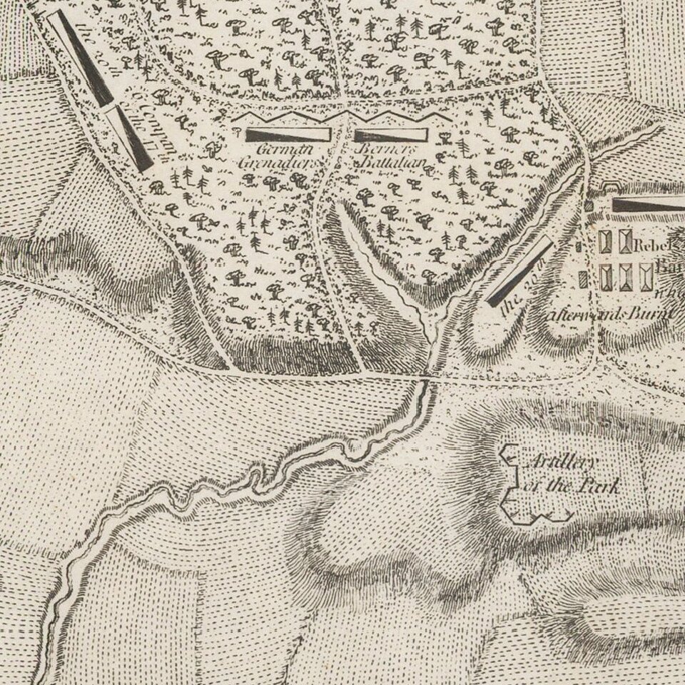 An important early battle plan, showing the position of the British and American Troops following the second battle of Saratoga.