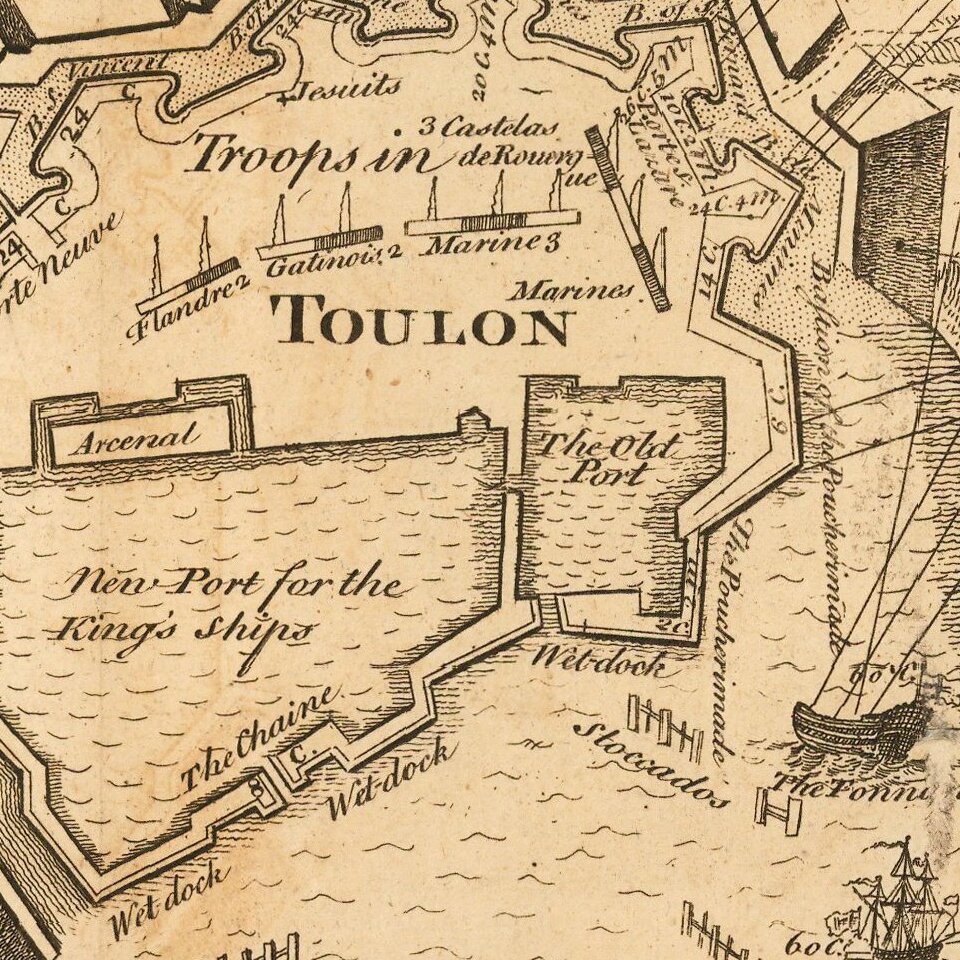 Detailed plan of Toulon, illustrating the fortifications of the town during the War of Spanish Succession.