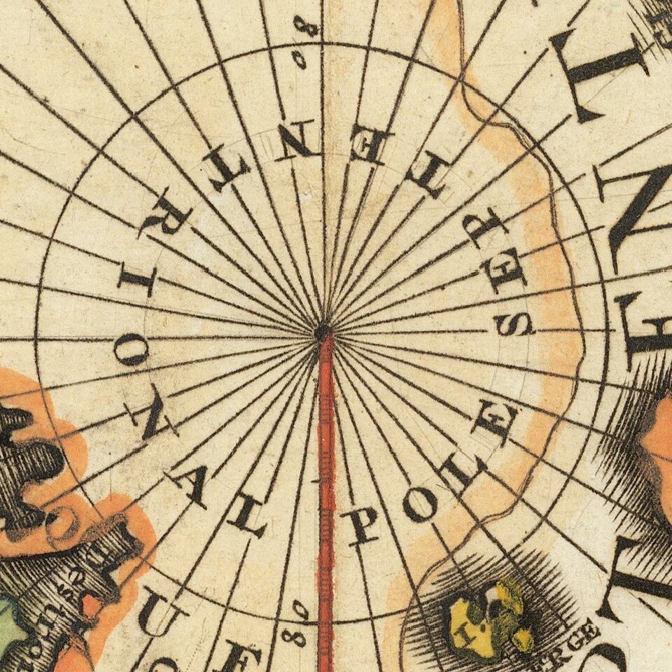 The map is a close copy of the extremely rare Cassini-Nolin map issued in 1696 which was one of the most carefully prepared and scientifically accurate maps of the period. The original was eight meters across as laid out on the floor of the Paris Observatory by the French Academy of Sciences. During the 1670s and 1680s, prolonged scientific observations were conducted throughout the world by the Academy, under Cassini's direction. Astronomical observations from over 40 stations throughout the world were gathered and compiled, including Edmund Halley's observations at the Cape of Good Hope, among others. Quebec, Goa and Peking were among the other more exotic locals.
