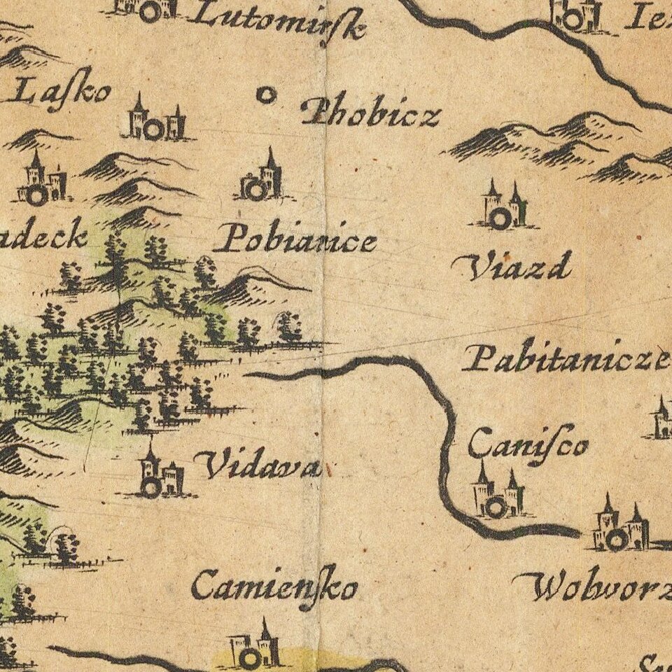 Old color example of Blaeu's map of Poland showing the region from the Oder east to Podlachia on the Bug.