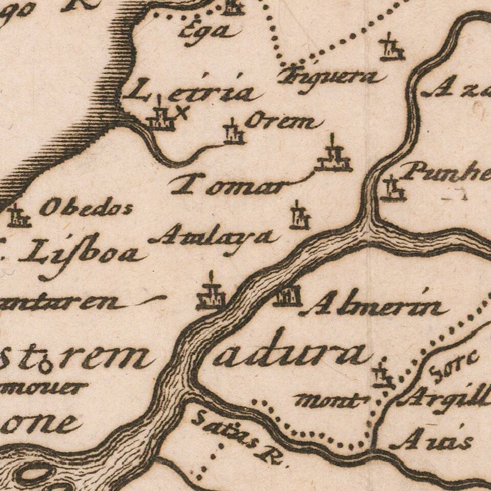 Rare map of Portugal, published by Sir Jonas Moore in London.