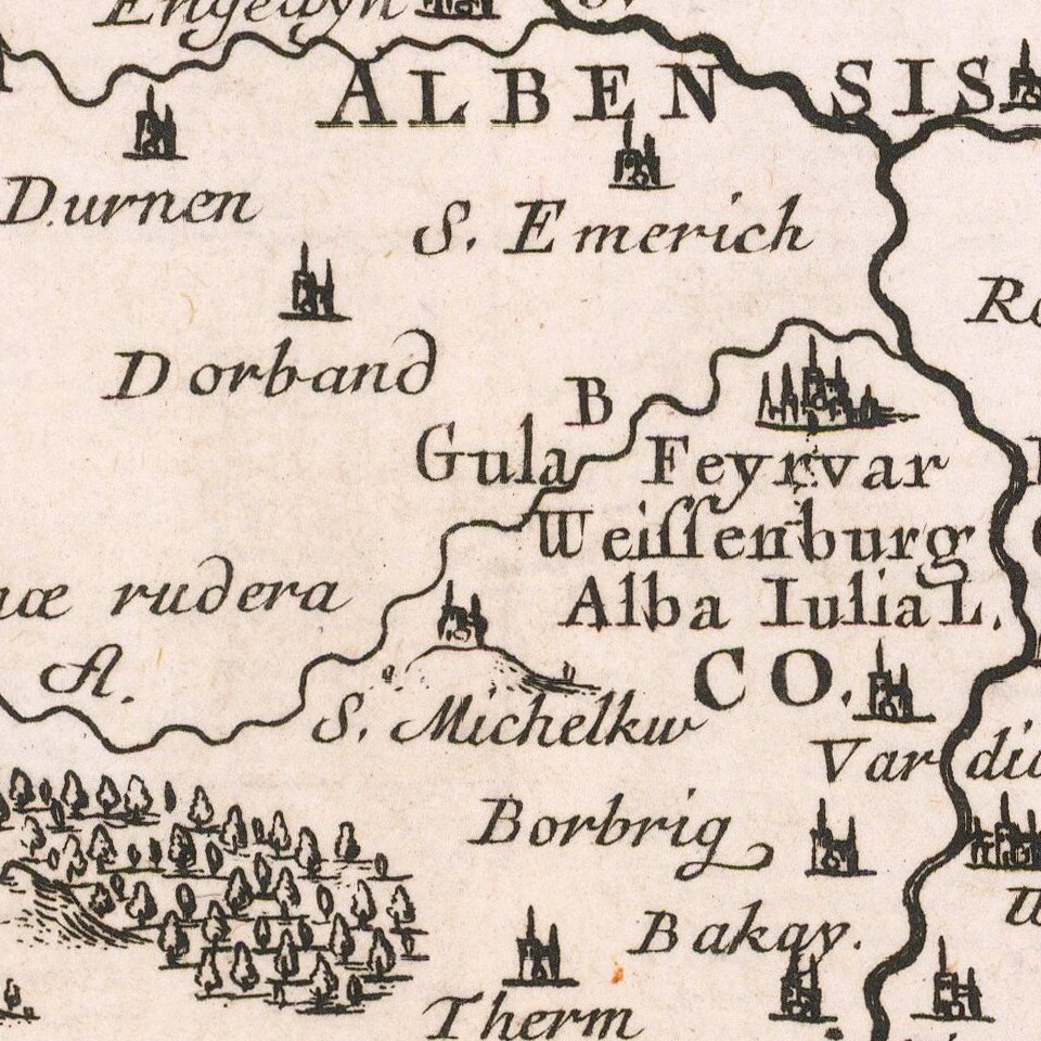 Sanson utilized the prior maps of several important mapmakers, including Wolfgang Lazius (1514-1565), Johannes Sambucus (1531-1584), Gerhard Mercator (1512-1594).