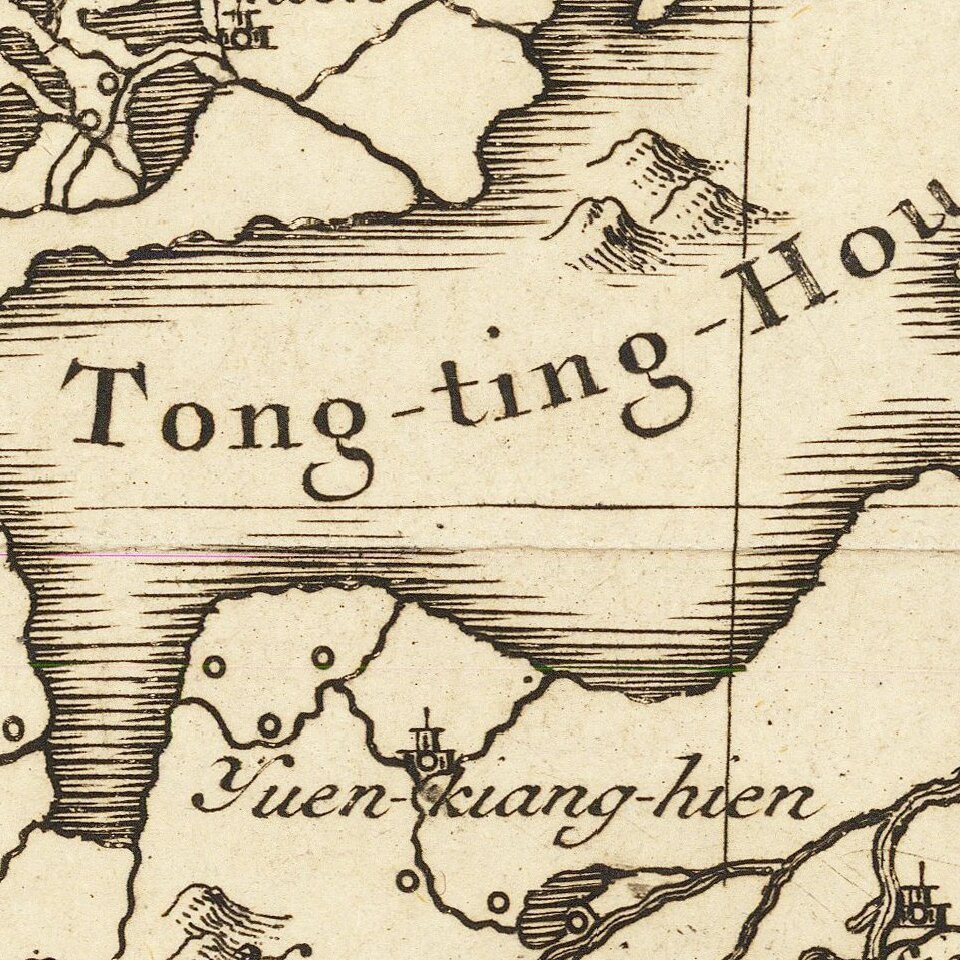 Shows the source of the Yang-tse -Kiang River in Lake Tong-ting-Hou, along with the regional capital city of Wuhan (called Ou-Tchang-Fou) on this map.