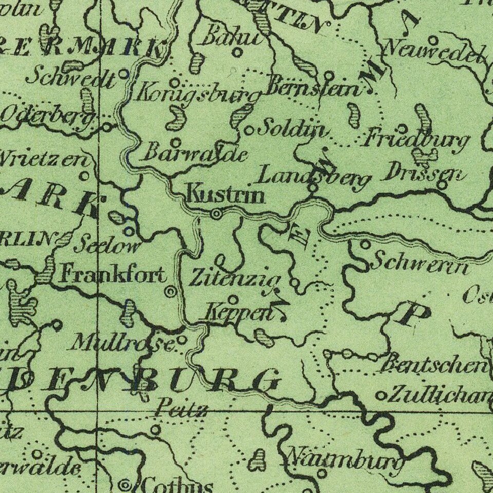 The map extends from the Lower Rhine in the west to central Poland in the east. Numerous towns are named, such as Leipzig, Breslau, Dresden, etc.