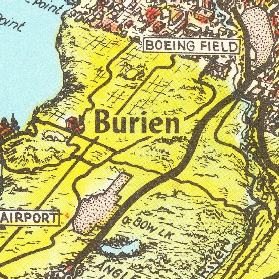The Evergreen Playground map was originally drawn during the Great Depression by Ed Poland, cartographer of many years at Kroll Map Company in Seattle, and changed over time. There have been some changes made over the years, such as inserting the Floating Bridges (I-90 and 520) and changing the border of the map - but the flavor remains the same. A pictorial birds-eye view of the Puget Sound with great place name detail and artistic touch by a master draftsman.