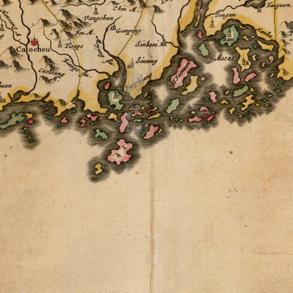 The First European Printed Map of Hong Kong Region -- Guangzhou, & Macao