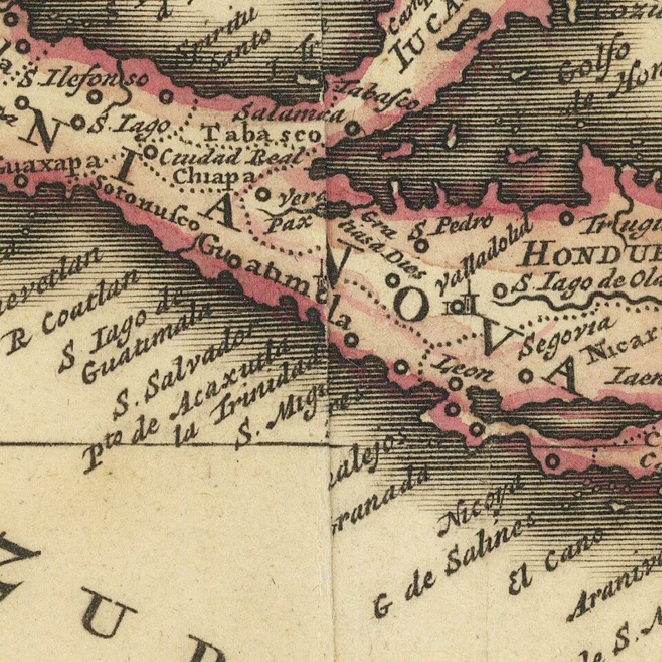 The treatment of the Strait of Anian is very unusual, with only the narrowest passage toward the otherwise undelineated northwest passage and an equally limited number of places in Button's Bay and Baffins Bay allowing for a transit from the Atlantic to the Pacific by water.