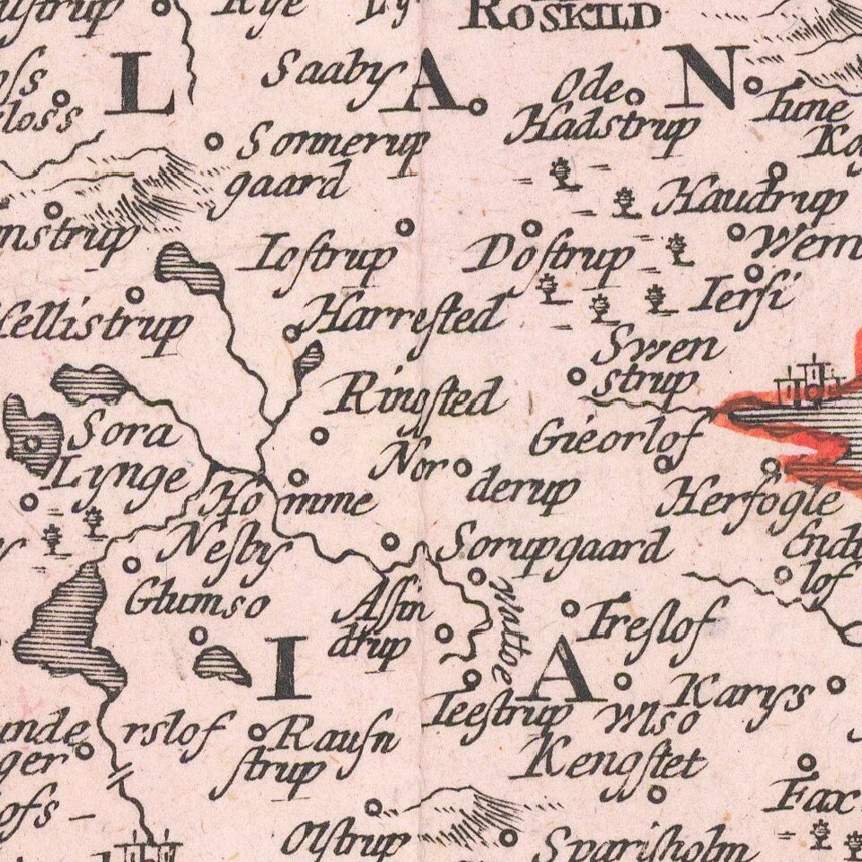 Fine dark impression of Homann's map of Denmark, Slesvig-Holstein and contiguous parts of Germany.