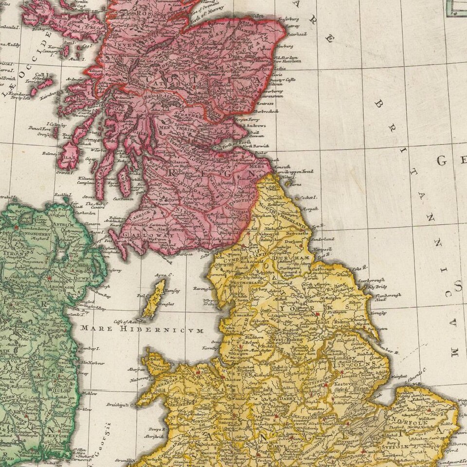 Striking example of this decorative map of the British Isles by the Heirs of JB Homann.