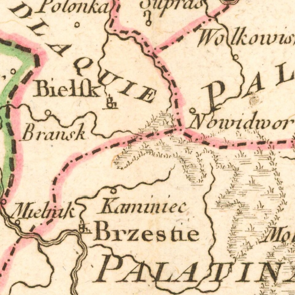 According to Niewodniczanski, this map first appeared in the 1765 edition of the Atlas Elementaire de la Geographie, including the address Chez Bourgoin Gaveur Rue de la Harpe vis a vis le Passage des Jacobins, a cote du Caffe de Conde, and was later re-issued in 1784 in the same atlas, with a different address for Bourgoin and without the number 16 in the bottom right corner.