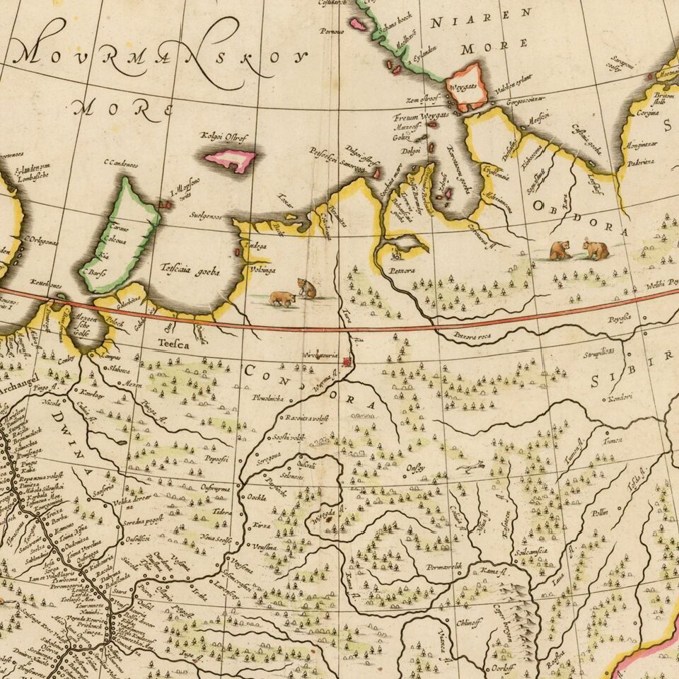 Fine example of the Moses Pitt re-issue of Blaeu's map of Russia, from Blaeu's Atlas Maior.