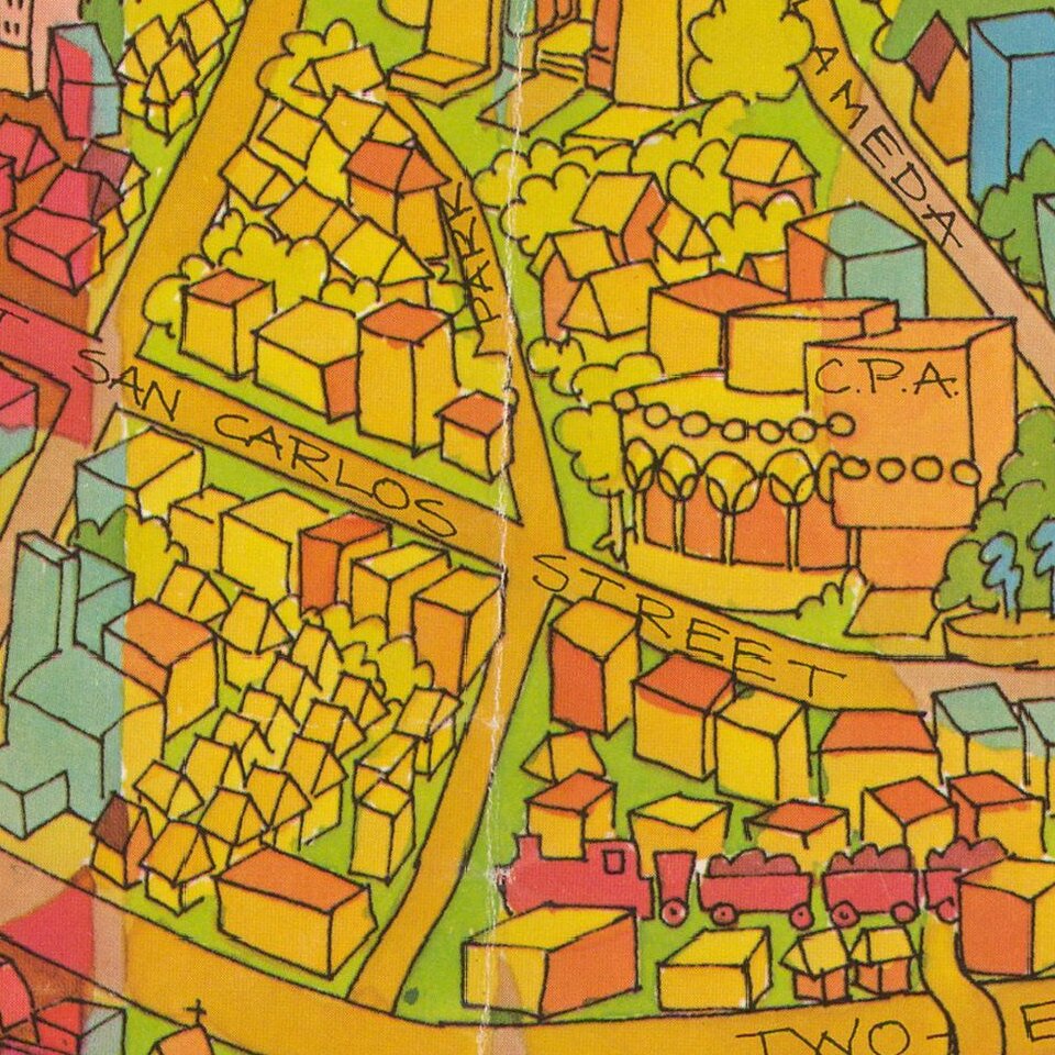 Decorative pictorial map of the area around San Jose, California, by Corbin Hilliam.